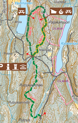 Paljakanvuoren luontopolku kulkee kalliolla, metsässä ja järven rannalla, reitin pituus on noin kaksi kilometriä. Osoite on Putouksentie 450. Opastetaulussa kerrotaan vuoren menneisyydestä, johon kuuluvat mm. muinaiset uhrikupit, vanhat juhannuksen viettoperinteet ja tarina Pirunpesästä. Lapsille vuoren jylhät luonnonmaisemat tarjoavat jännittävät puitteet seikkailuille ja luontoretkille. Reitille on rakennettu kaksi levähdyspaikkaa. Käymälää ei enää reitin varrella ole. Tutustu polkuun virtuaalisesti tästä.