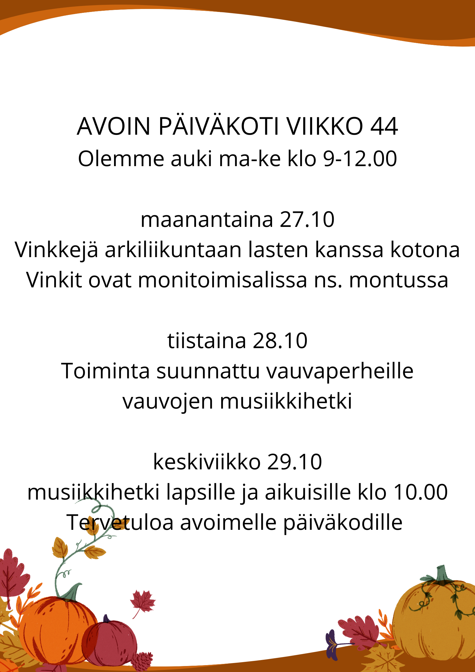 Sieltä löytyy mm. avoimen päiväkodin kuukausiohjelmat.